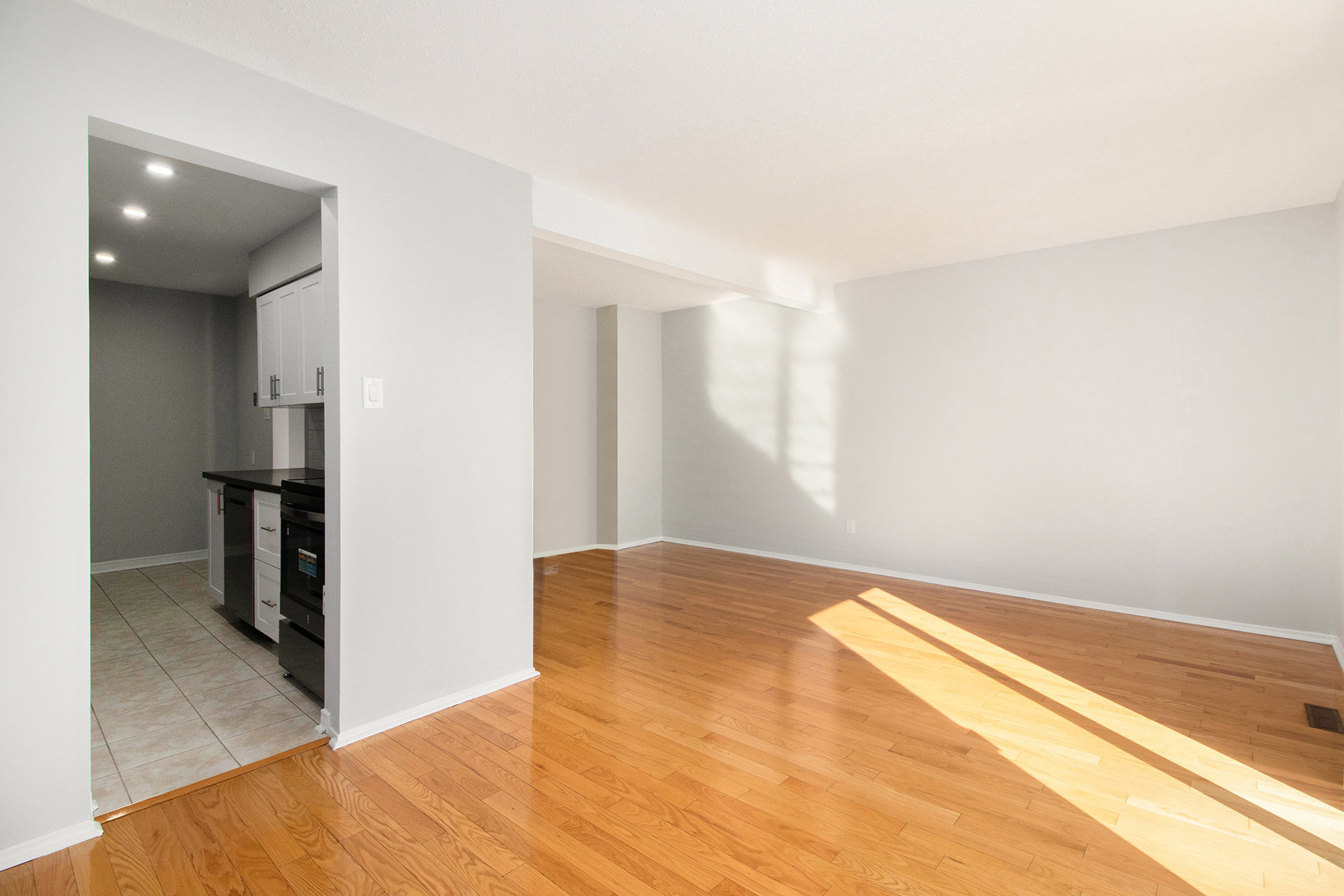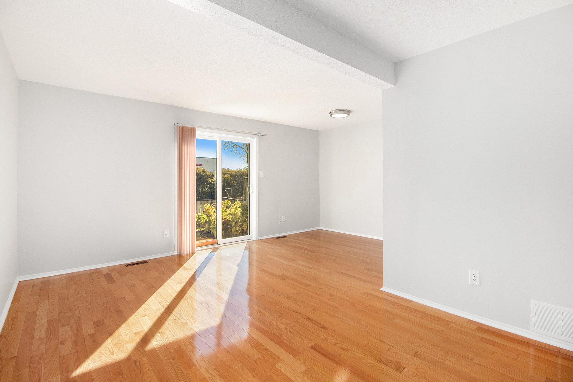 Welcome to this sparkling, move-in ready end-unit condo townhouse, freshly updated and ready for its next owners! The bright, open-concept main level features beautiful oak hardwood flooring in the living and dining areas. The modern white kitchen includes plenty of cabinetry, an almost-new stainless steel refrigerator, a new stainless steel stove, and a stainless steel dishwasher. A convenient powder room and direct garage access complete the main floor.